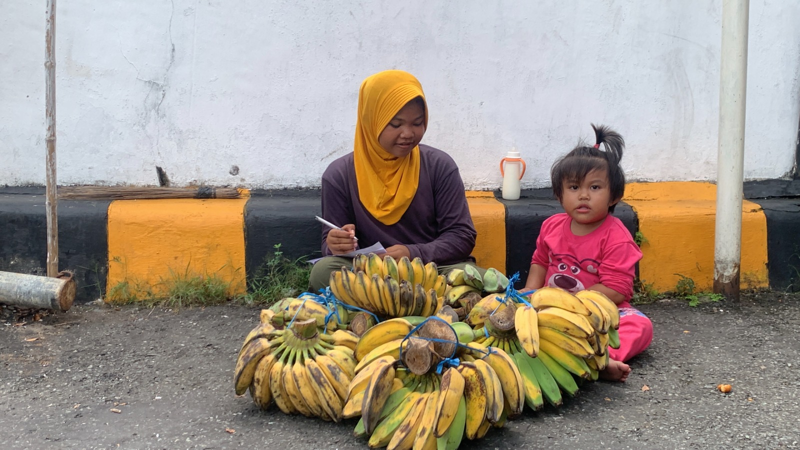 Pisang yang dijual Asria bukan hasil kebun sendiri. Ia membelinya dari pedagang lain, lalu menjual kembali dengan keuntungan sekitar dua ribu rupiah per sisir. Nominal kecil itu menjadi tambahan penting untuk membantu kebutuhan keluarga mereka. Sejak pagi hingga sore, Asria berkeliling dari satu jalan ke jalan lain sambil menjaga adiknya yang masih terlalu kecil untuk ditinggal sendirian.