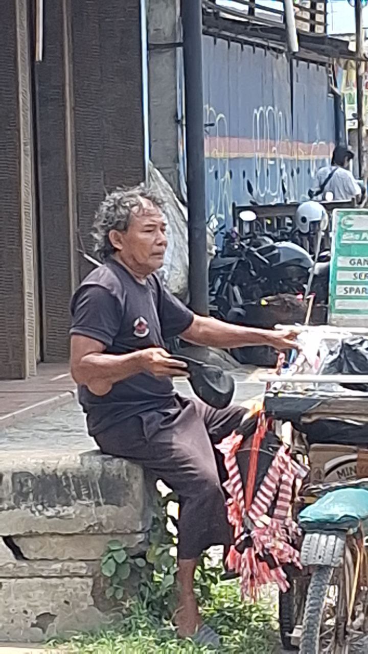 “Kadang saya lelah sekali, tapi saya tidak punya pilihan selain terus bekerja untuk anak dan istri,” — Abah Obi, 63 tahun