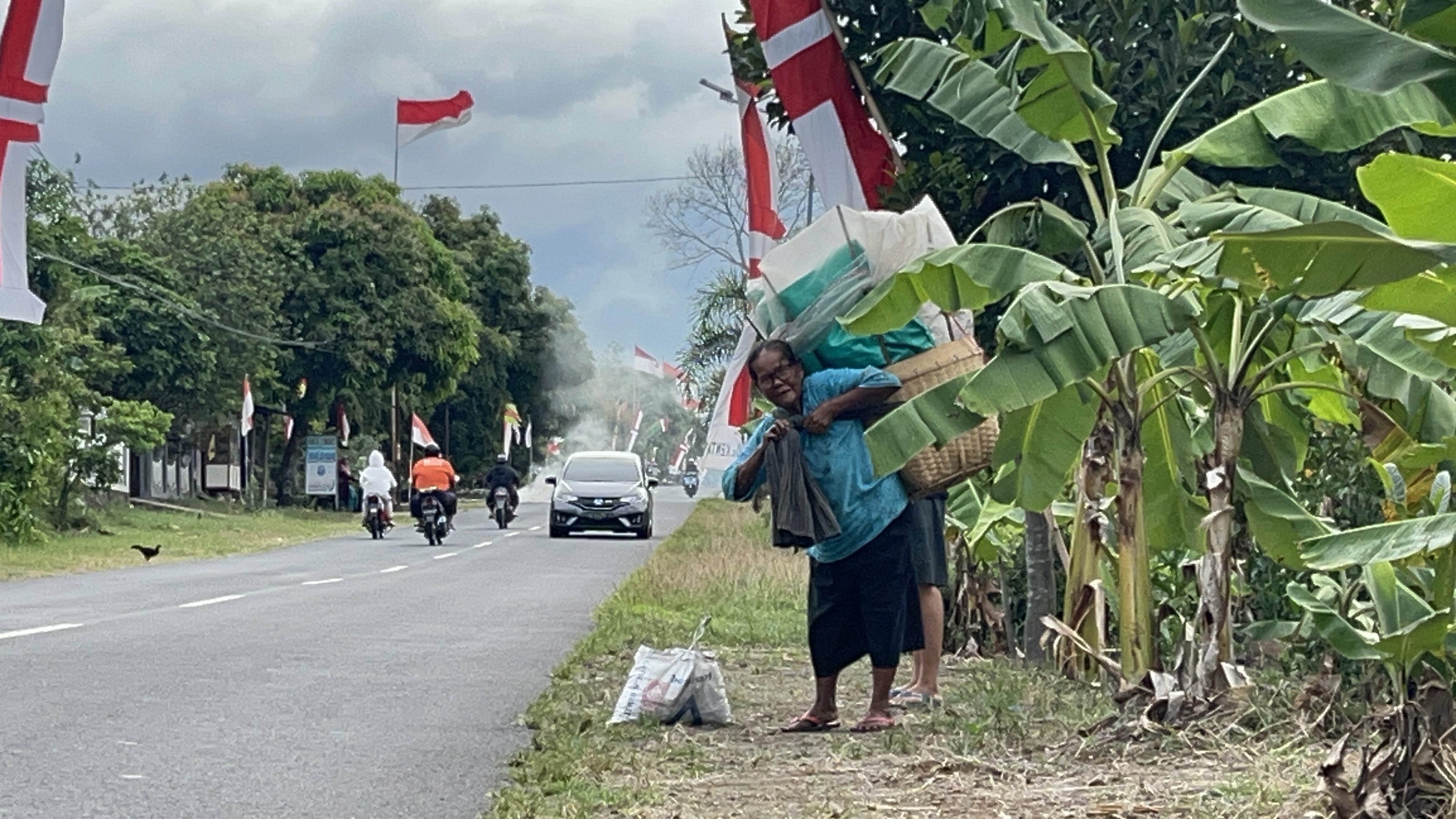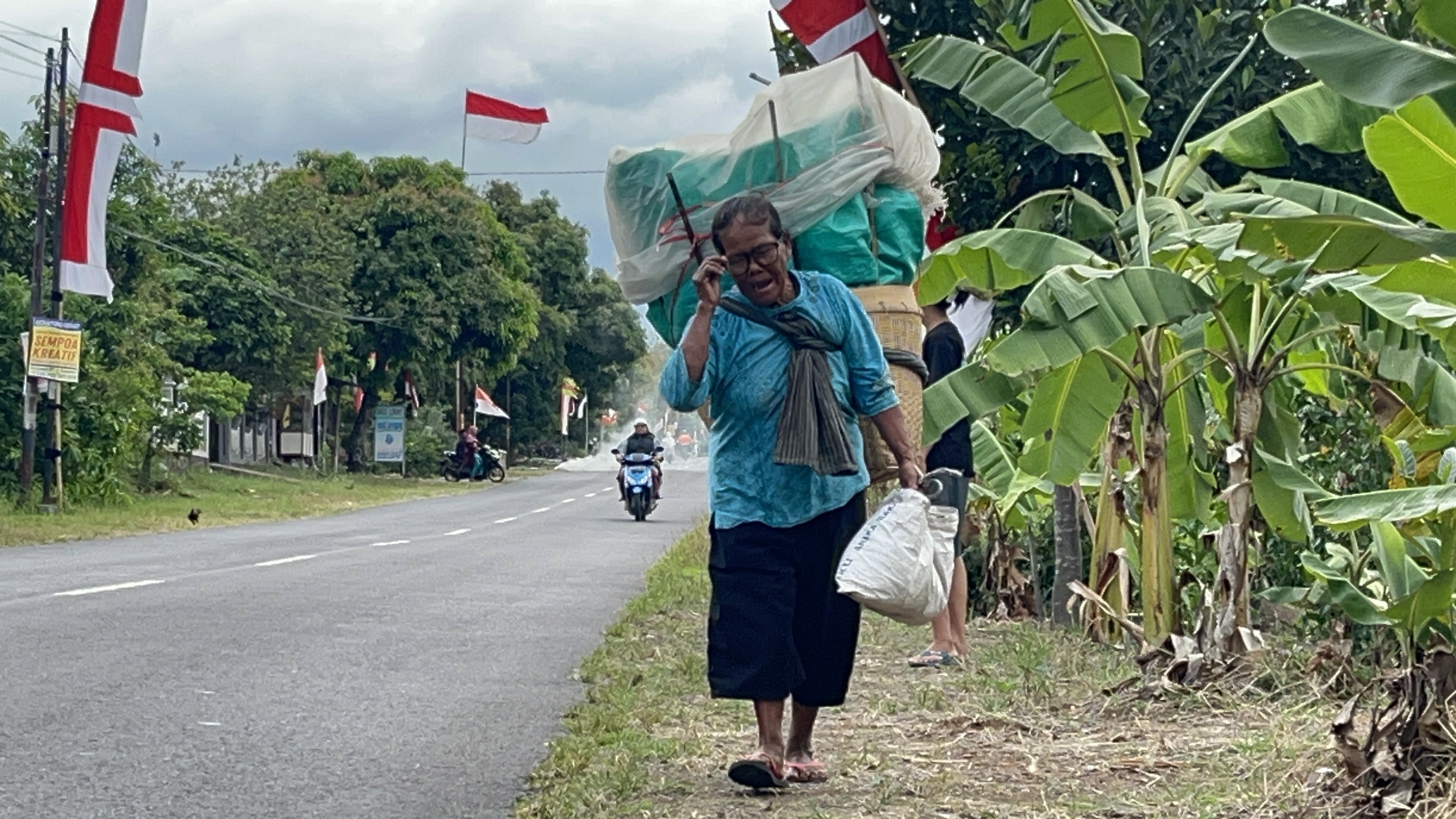 Setiap pagi, Nenek Sarinem memikul keranjang besar berisi krupuk buatan tangannya sendiri. Ia berjalan kaki dari satu desa ke desa lain, menempuh jarak hingga 20 kilometer demi bisa menjual dagangannya. “Kalau tidak jualan, saya tidak bisa makan, Nak,” ucapnya pelan sambil tersenyum.