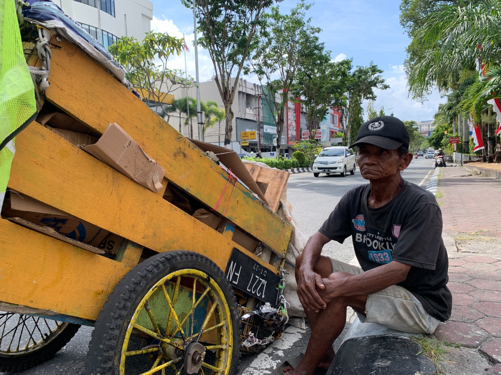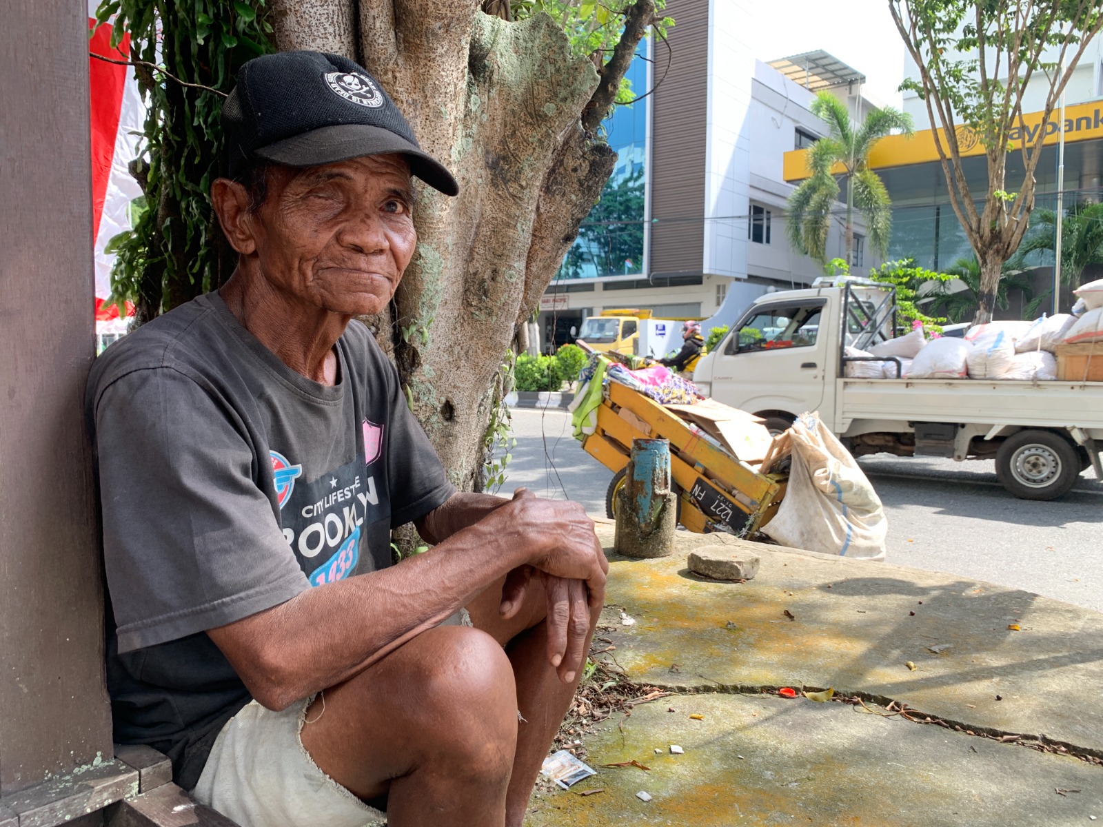 Setiap pagi, ia menyusuri jalanan kota mencari kardus dan botol bekas. Jika beruntung, hasilnya bisa Rp7.000 untuk makan. Tapi tak jarang ia pulang dengan tangan kosong. Di hari-hari seperti itu, air putih jadi satu-satunya yang bisa mengganjal perutnya.