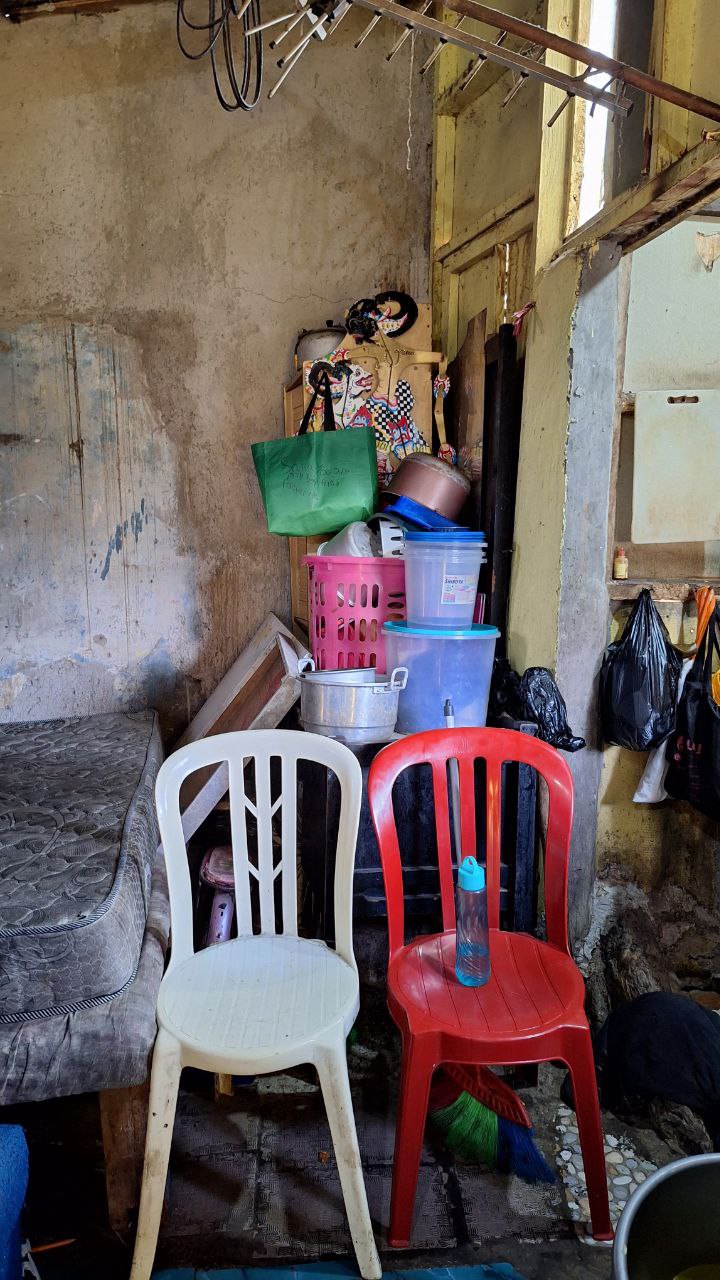 Tempat tinggal Mak Titi hanyalah bekas warung kecil di pinggir jalan yang ia gunakan seadanya untuk tidur dan beristirahat, tanpa fasilitas layak.
