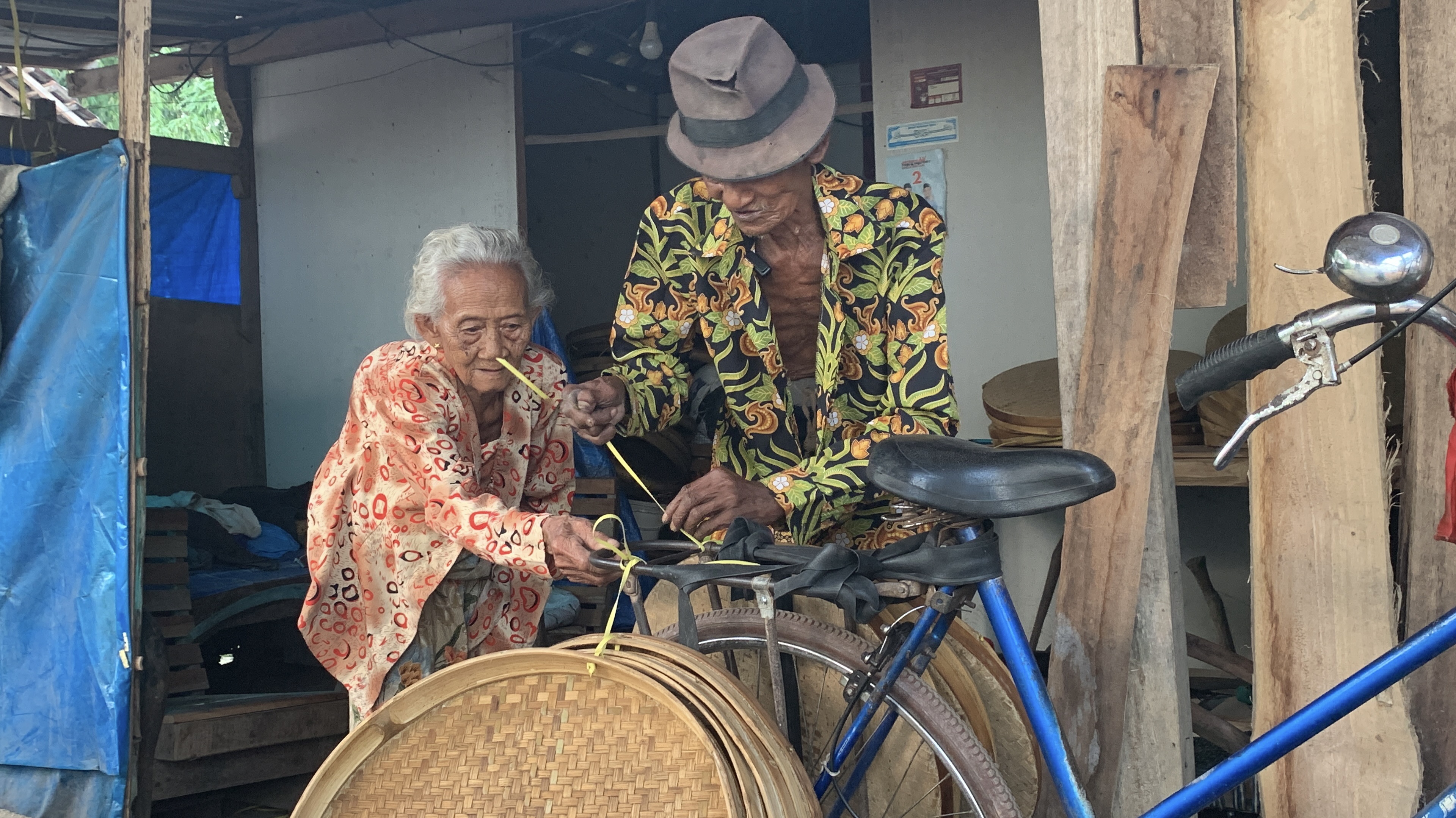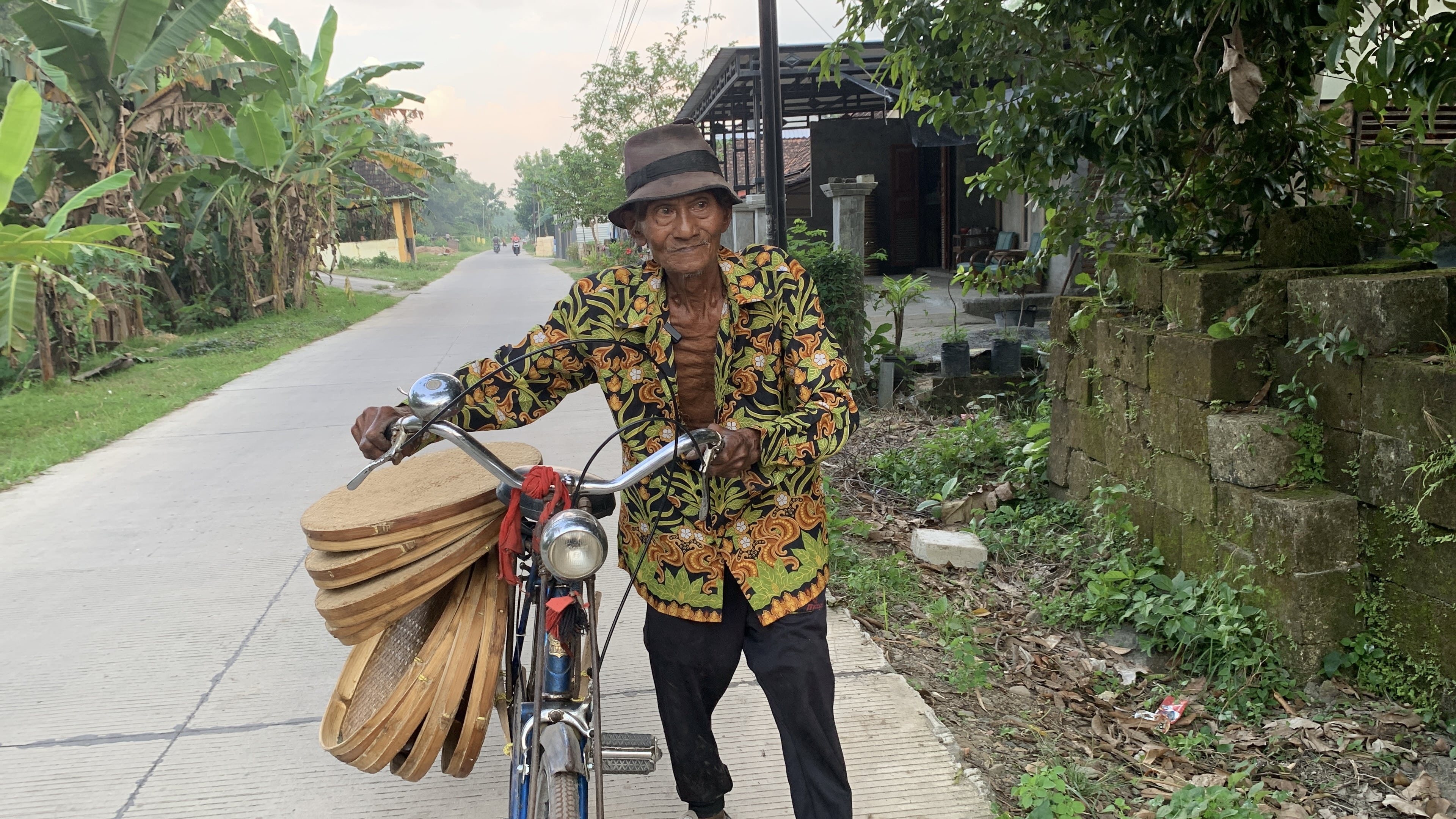 Setiap pagi, dengan tubuh lemah dan sering sakit di sendi, Mbah Jali menuntun sepeda tuanya berkeliling kampung. Di atas sepedanya ada tampah anyaman bambu hasil kerajinan mereka. Mbah Waenten ikut mendampingi, meski tubuhnya juga sering sakit-sakitan.