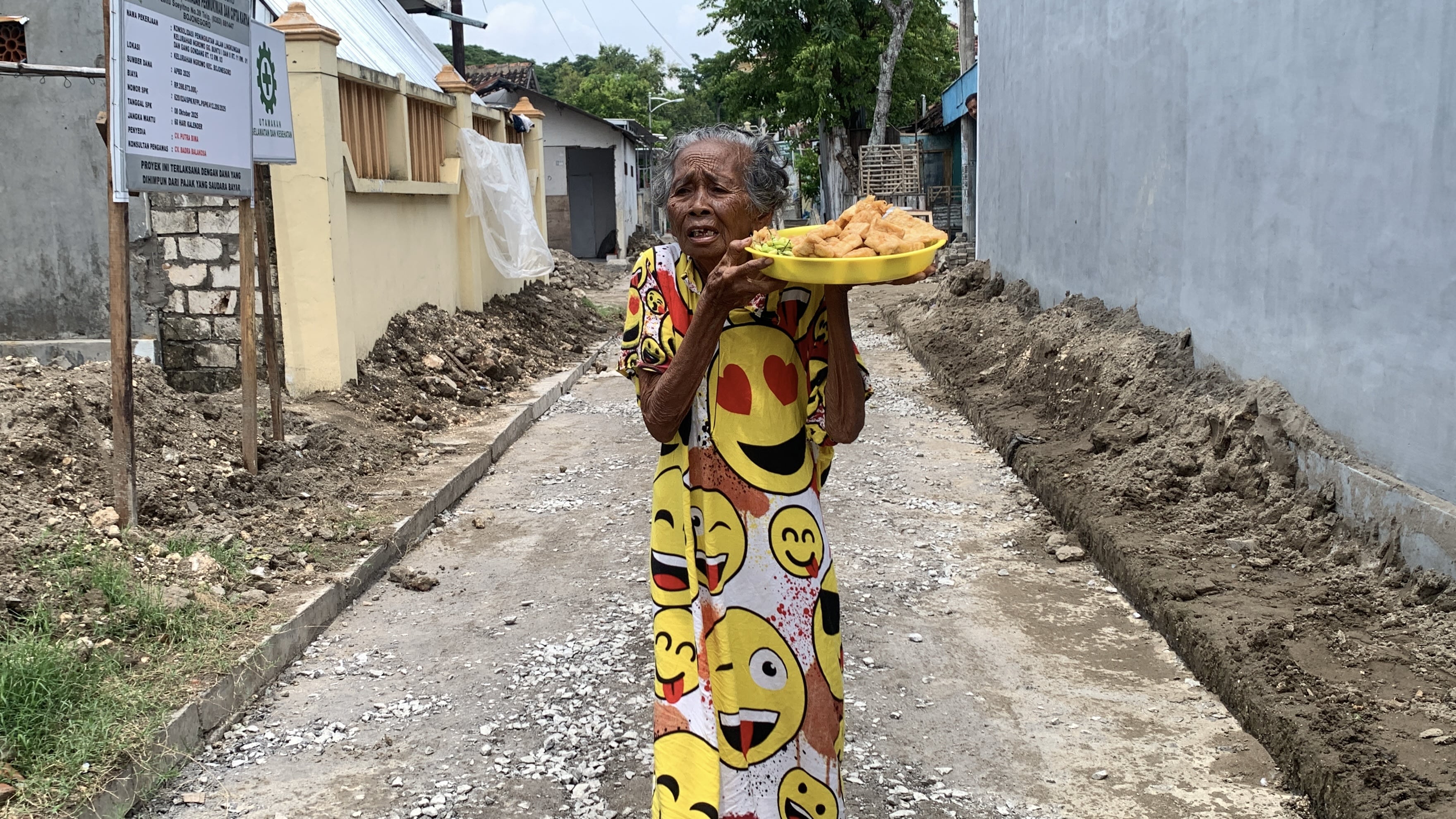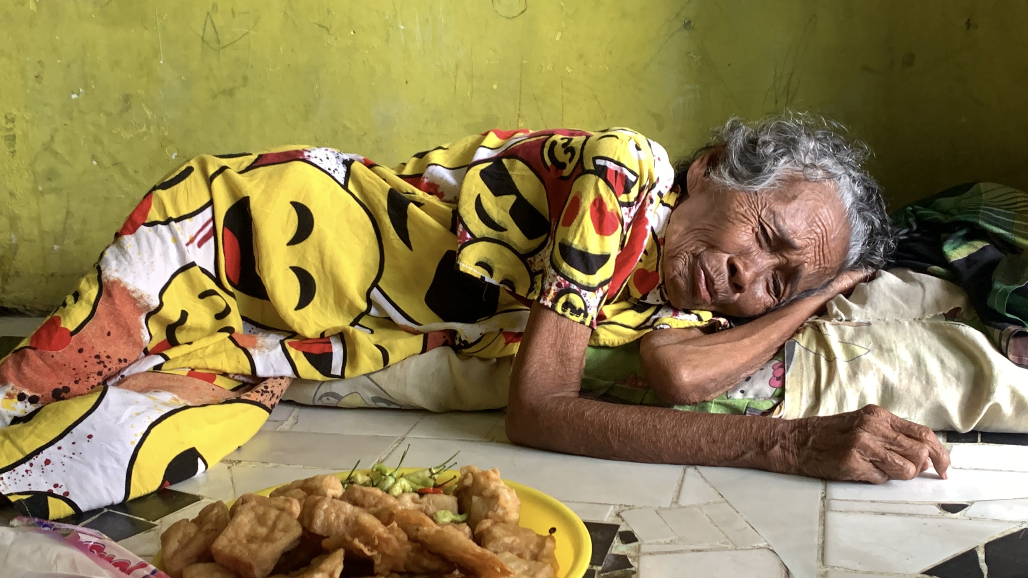 Sejak jam enam pagi hingga tengah hari, Mbah keliling kampung membawa gorengan di tangannya yang mulai gemetar.