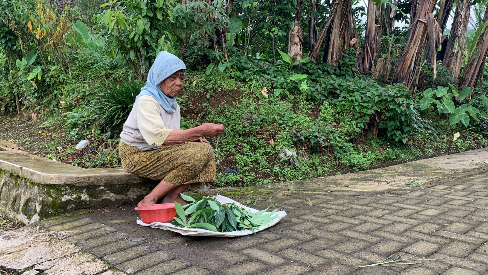 Mbah Sini (73) menjadi tulang punggung keluarga dengan berjualan daun singkong sambil merawat suaminya yang sakit keras. Setiap hari, ia berjalan sekitar 10 kilometer untuk menawarkan dagangannya dari rumah ke rumah. Satu ikat daun singkong ia jual seharga Rp5.000.