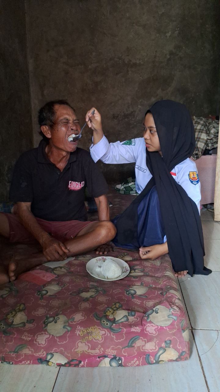 Kondisi fisik Sinta tidak sempurna, namun semangatnya luar biasa. Dengan segala keterbatasan, ia terus berjuang sendirian menjaga keluarganya. “Saya ingin adik saya bisa sekolah lagi, itu sudah cukup buat saya,” ucapnya dengan mata berkaca-kaca.