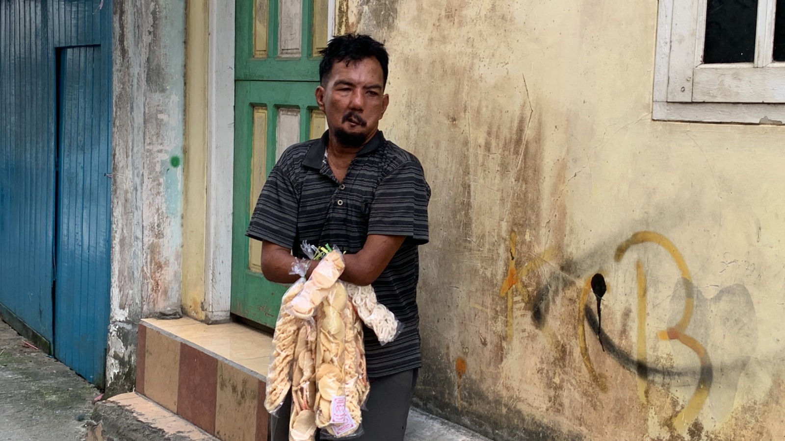 Setiap pagi, di gang kecil dengan jalan setapak, terlihat Pak Irwan berjalan pelan namun penuh tekad, menjajakan kerupuk dari rumah ke rumah.