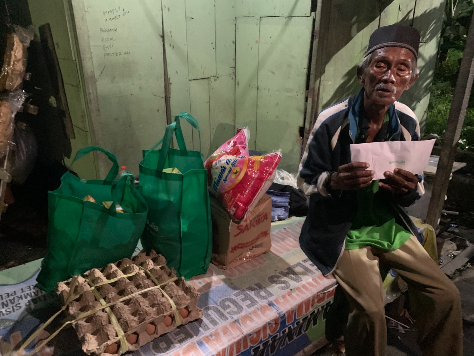 Setiap pagi, Mbah Ali berjalan menyusuri jalanan menjajakan kerupuk, berharap dagangannya laku untuk bisa makan hari itu. Namun sering kali hasilnya tak seberapa. Bahkan pernah, dagangannya tak laku dua hari berturut-turut. Yang lebih menyayat hati, Mbah Ali pernah ditipu dengan uang palsu.