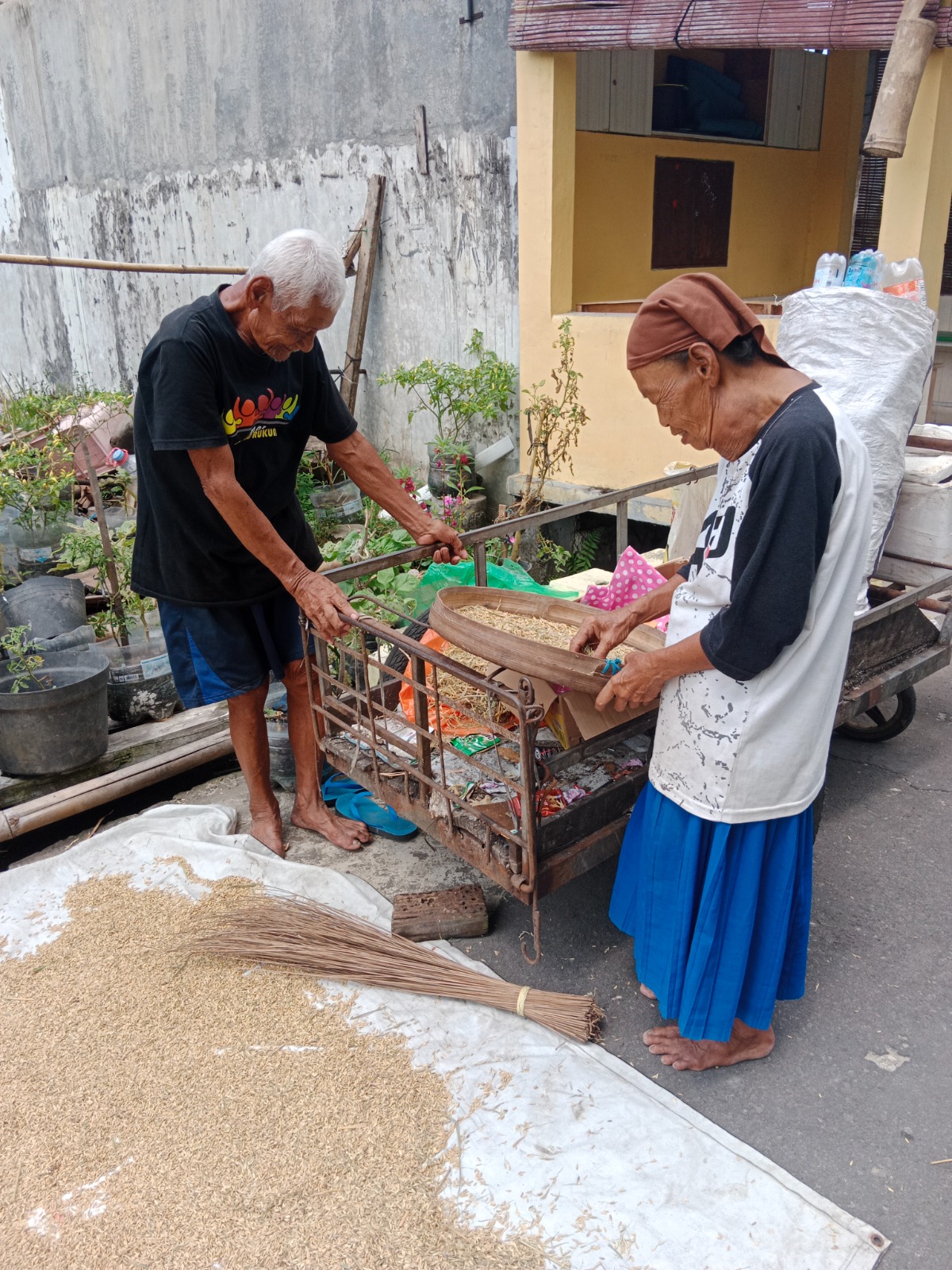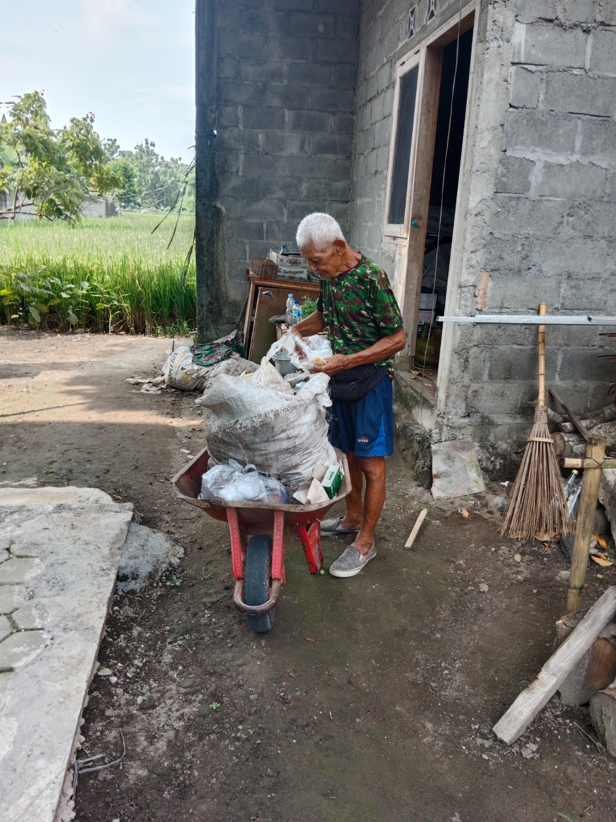 Setiap pagi hingga menjelang sore, Mbah Kismo (80) mendorong gerobak besi tua keliling kampung untuk memunguti sampah. Bukan untuk mencari nafkah besar, hanya sekadar bisa makan hari itu. Botol plastik dan kardus bekas dikumpulkannya, dipilah satu per satu. Seminggu sekali, tukang rongsok datang membeli, itu pun hanya cukup untuk beli beras.