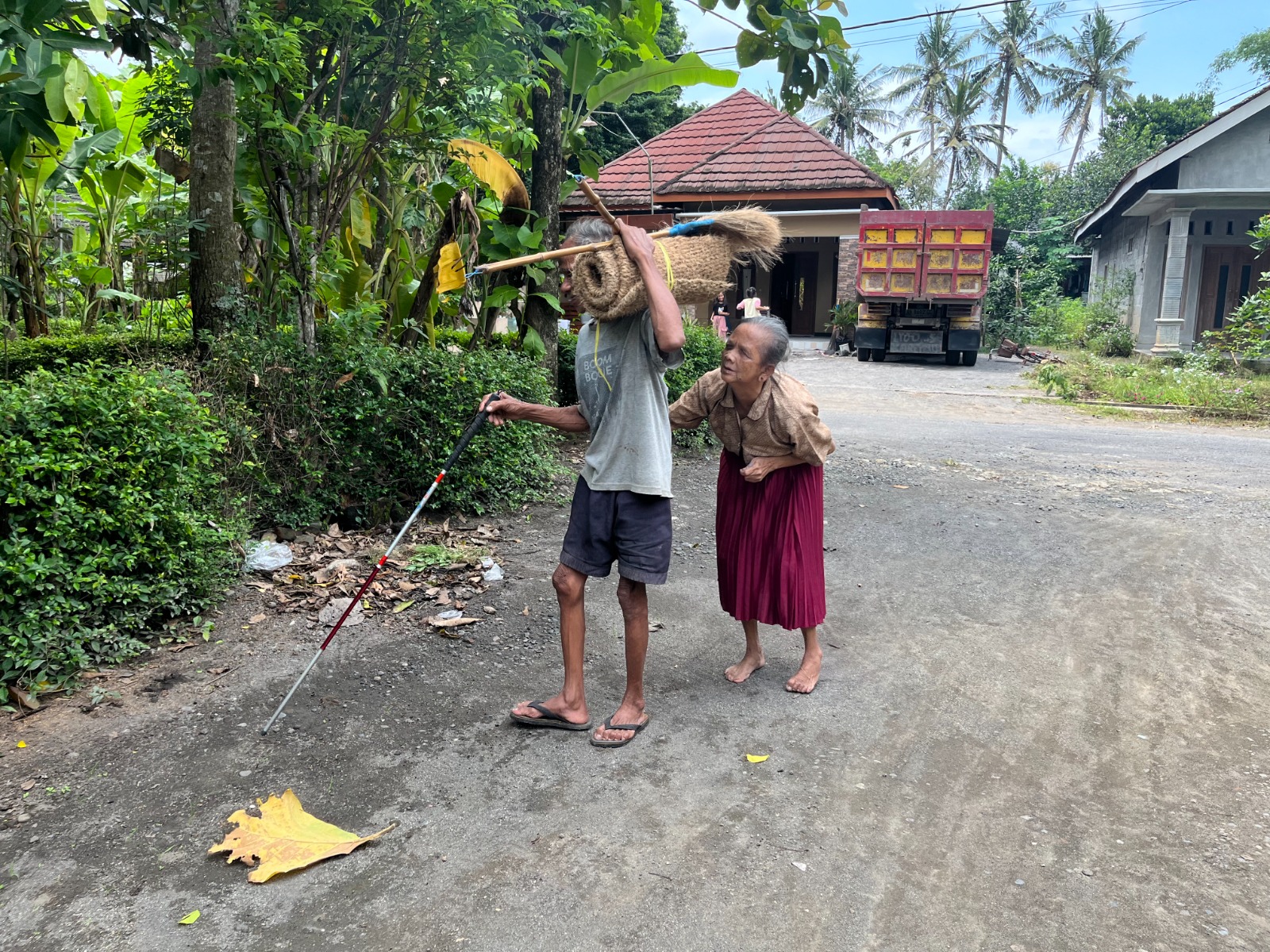 “Sejak kecil saya sudah tidak bisa melihat… tapi saya tetap harus berusaha biar bisa makan,” ucap Mbah Ponijan (70) pelan.