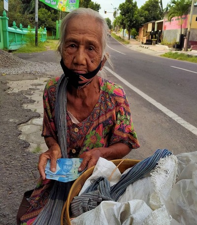 Untung yang didapat pun tak seberapa, hanya lima ratus rupiah per bungkus, itu pun kalau laku. Pernah juga, Mbah ditipu dengan uang palsu. Namun alih-alih marah, ia hanya tersenyum kecil dan berkata, “Nggak apa-apa, Allah pasti lihat.”