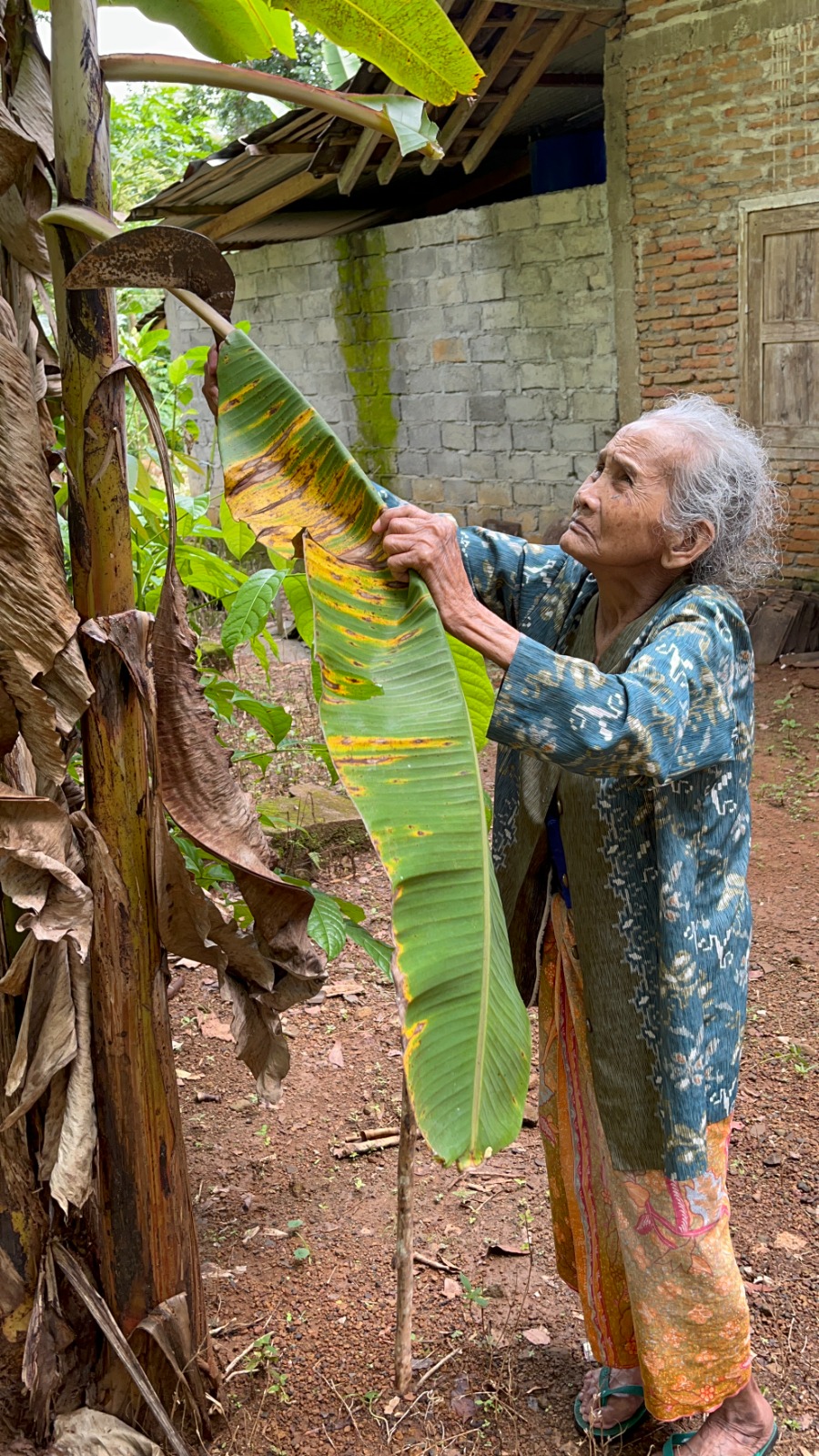 Untuk bertahan hidup, Mbah Paiyem hanya menunggu jika ada tetangga yang datang membeli daun pisang ke rumah, meski itu jarang terjadi. Saat beras habis, ia meraba jalan menuju kebun kecil di belakang rumah, mengambil singkong atau apa saja yang bisa dimakan, agar suaminya tetap bisa makan.