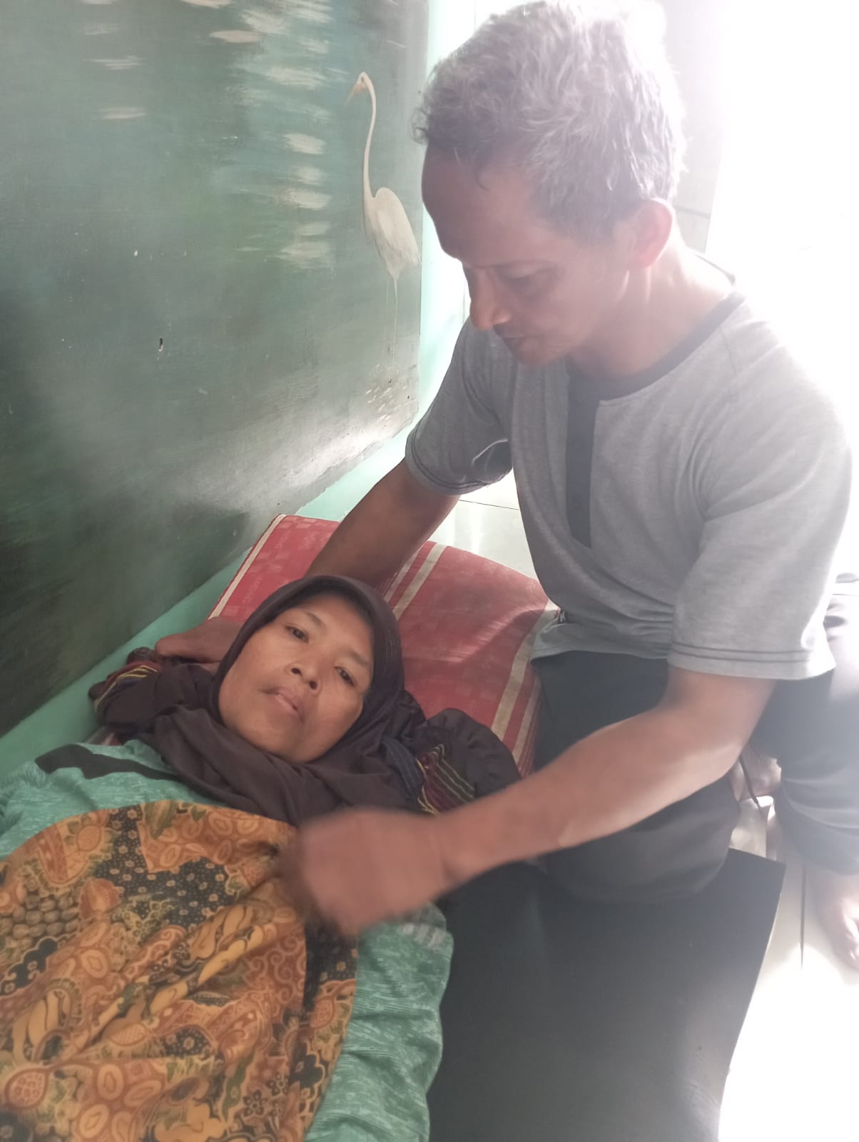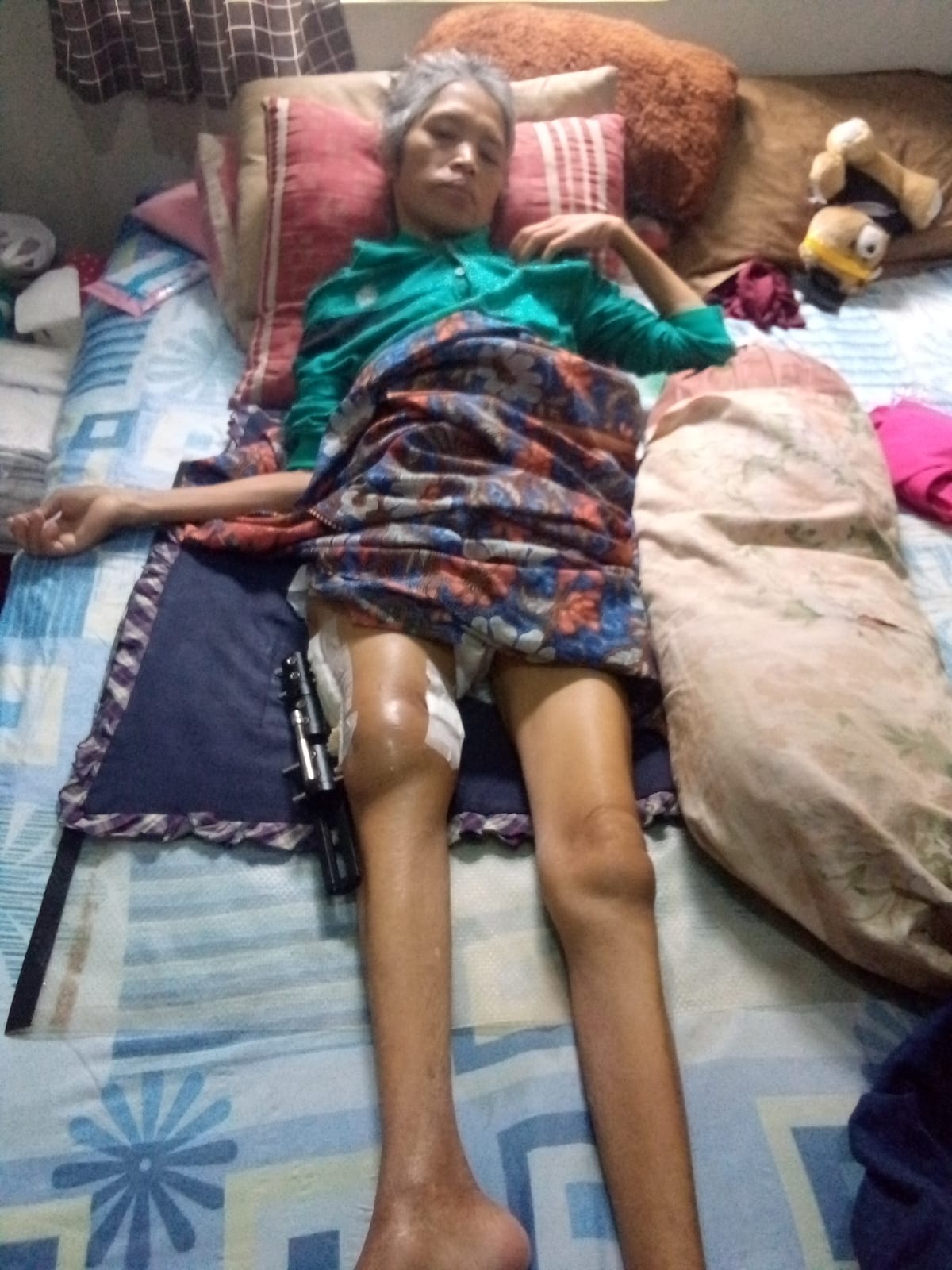 Bu Nani kini hanya bisa terbaring di tempat tidur. Setelah mengalami kecelakaan jatuh, ia harus menjalani operasi amputasi. Sejak saat itu, tubuhnya lumpuh total dan tak lagi mampu bergerak. Semua aktivitas makan, mandi, hingga buang air harus dibantu.