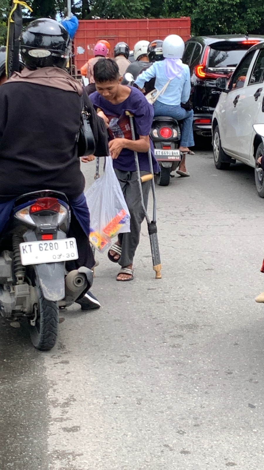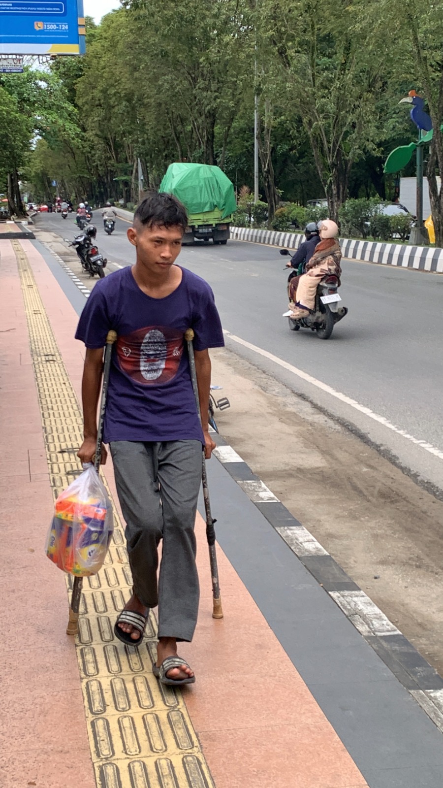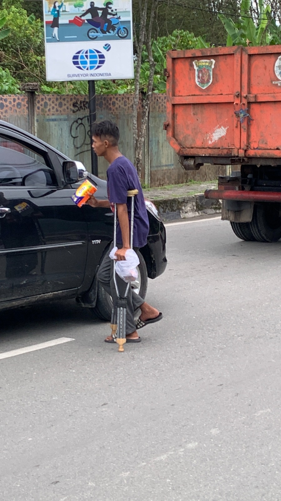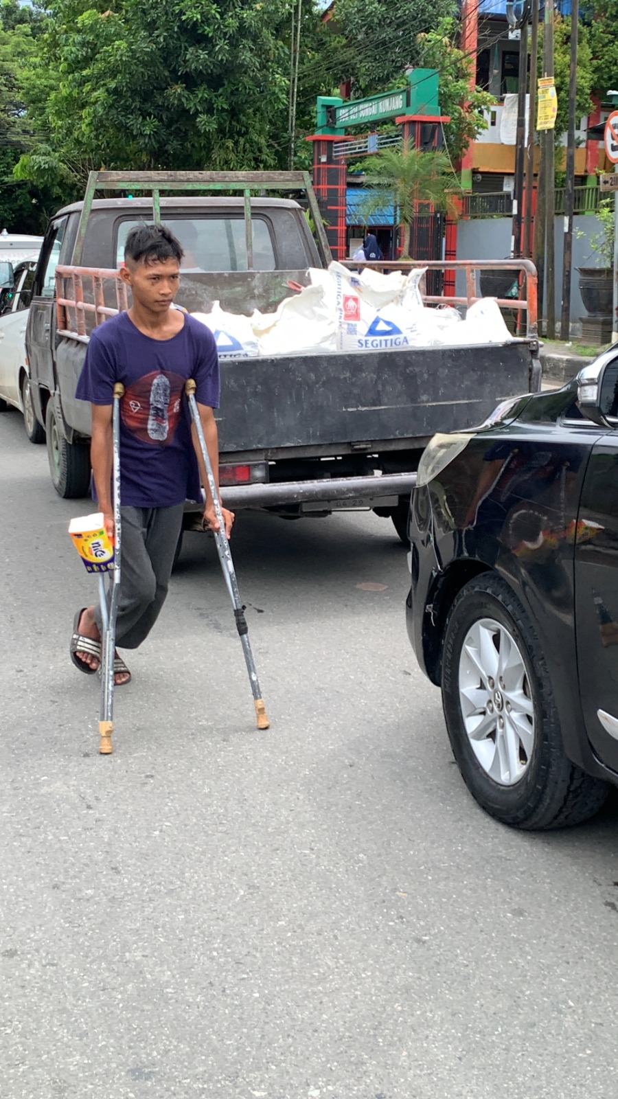 Pada siang hari di tengah keramaian simpang empat lampu merah, Dzaky (16) berdiri menawarkan tisu kepada para pengendara. Usianya masih sangat muda, tetapi beban hidup yang ia tanggung terasa jauh lebih berat. Langkahnya tampak pincang akibat kecelakaan beberapa tahun lalu ketika ia tertabrak motor saat hendak menyeberang jalan.