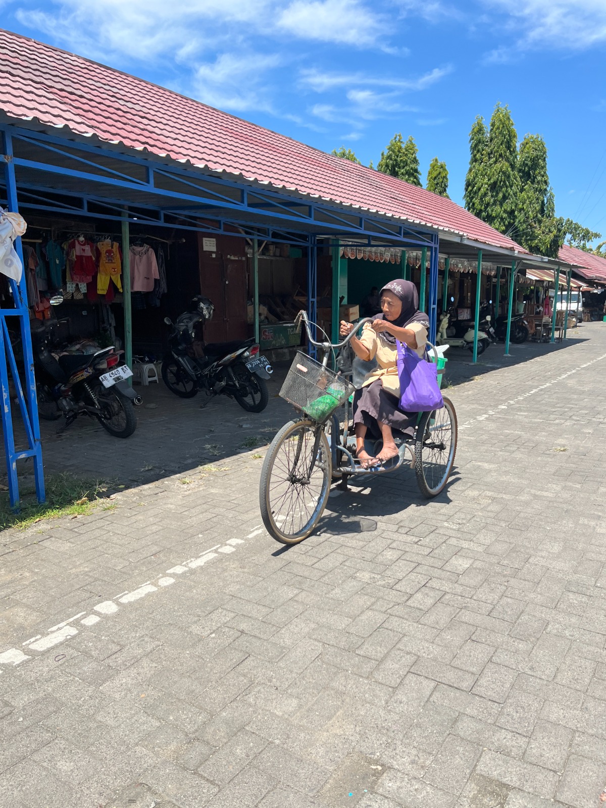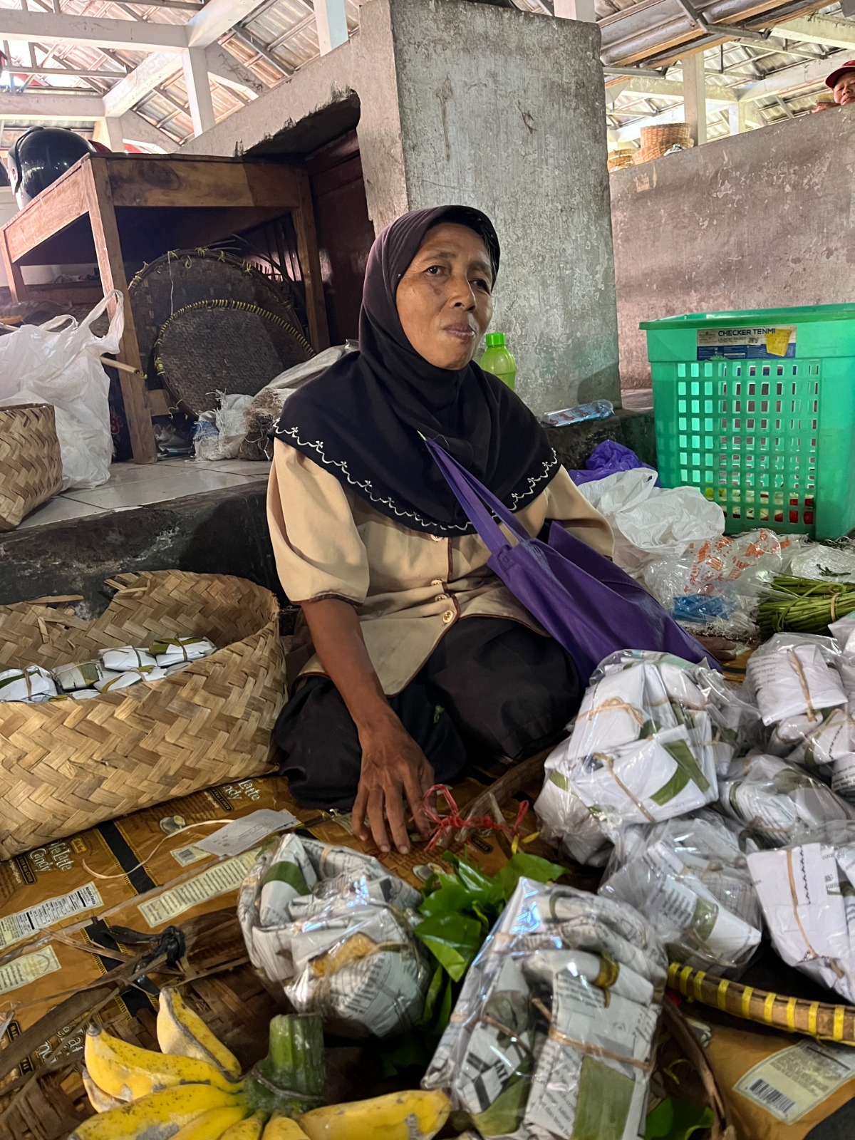 Di pasar ia duduk di pinggir jalan sembari menunggu pembeli tempenya datang. Satu bungkus tempe ia jual seharga 500 perak, dengan untung yang hanya 150 perak. Jika pasar ramai, ia bisa membawa pulang 30.000. Namun sering kali dagangannya tidak laku. โKalau sepi, tiap 10 biji terpaksa saya jual Rp3.000 mas yang penting laku, daripada nanti busuk. Yang penting saya sama ibu bisa makan,โ ucapnya lirih. Untung kecil, bahkan rugi, sudah biasa ia terima.
